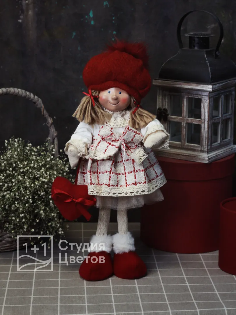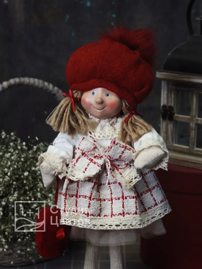 Очаровательная сувенирная кукла «Девочка в красном берете» — воплощение уюта и романтики.